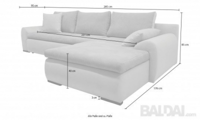 Kampas turi miegamą funkciją ir patalynės dėžę,keičiama kampo pusė. Ilga gulima vieta